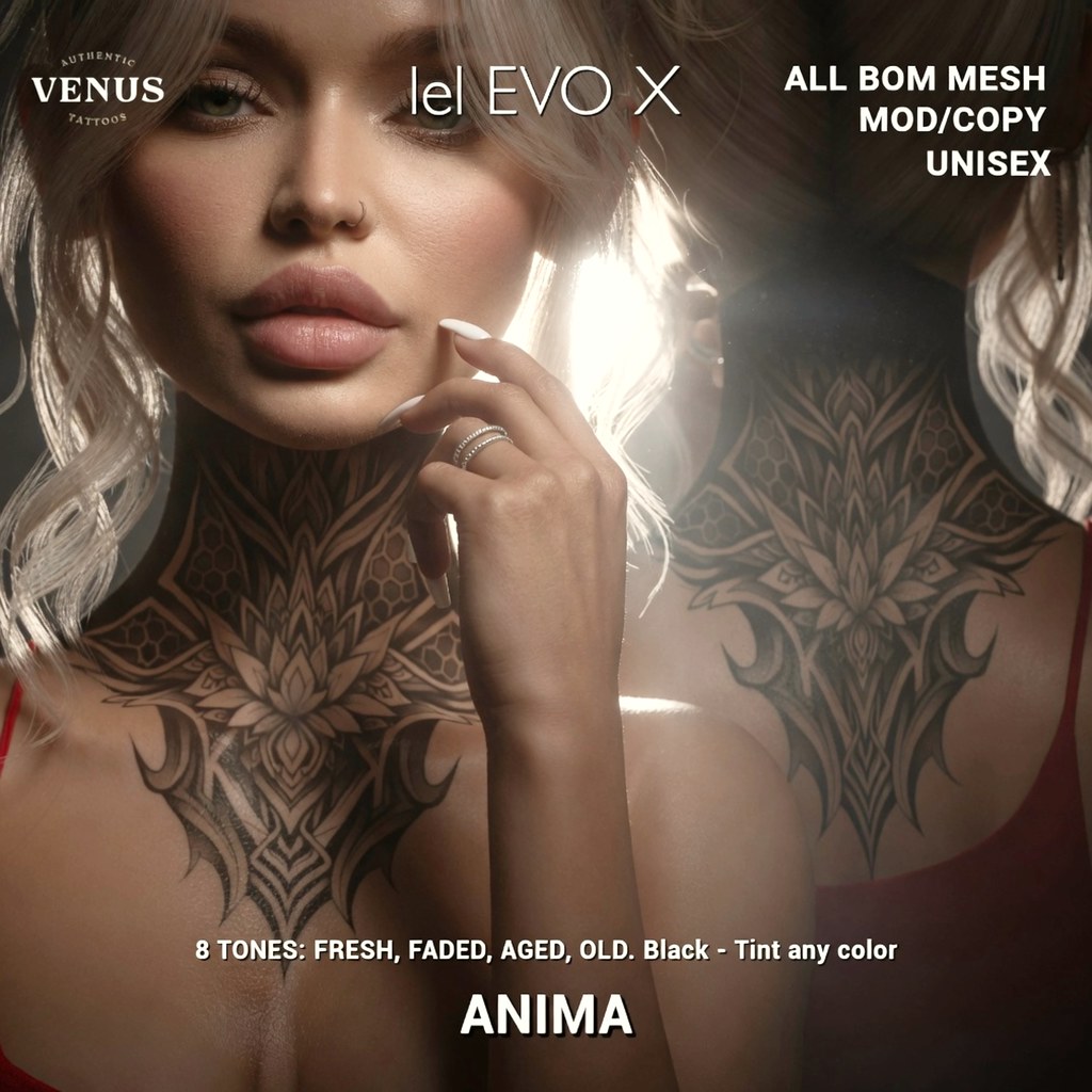 Bold, intricate mandala-style EVOX neck tattoo with sacred geometry and floral fusion.